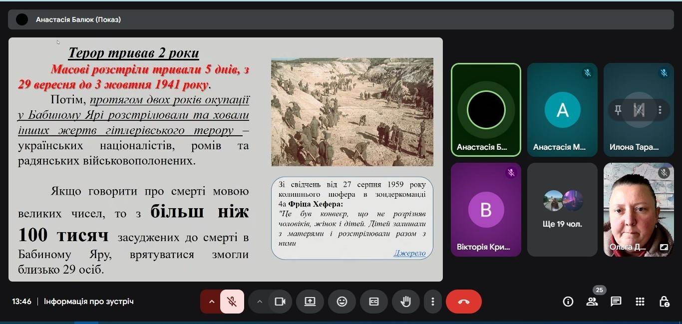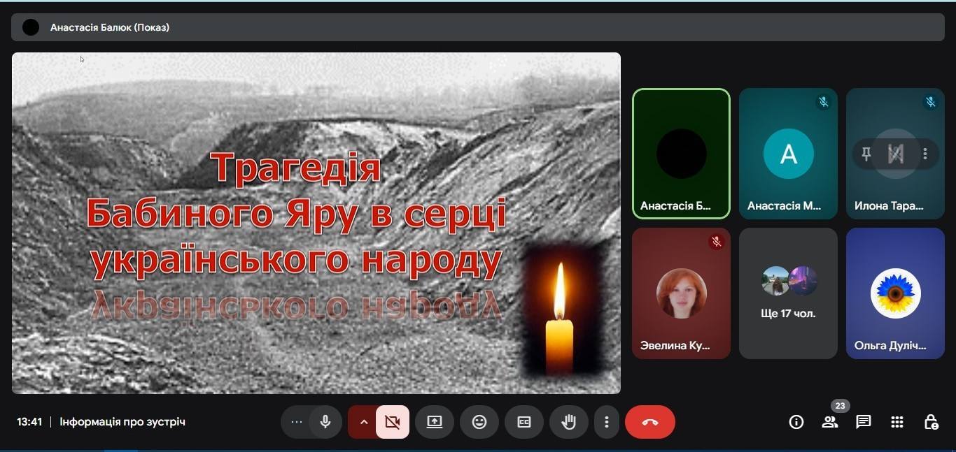 30.09.2025 року здобувачі освіти групи БТ-23-1/9 провели меморіальний захід, присвячений роковинам трагедії Бабиного Яру.